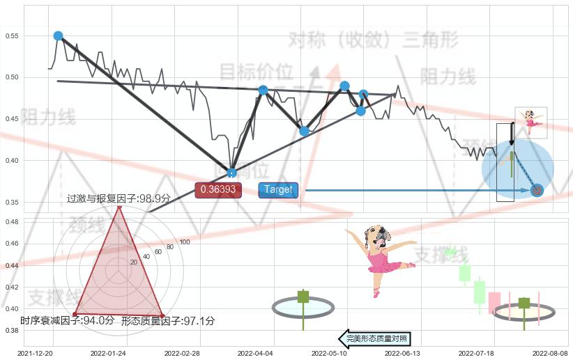➢ 【卖1】: 激进型 卖点→(2022-05-27: 0.46549 )形成突破下降【对称】三角形整理【整理】形态