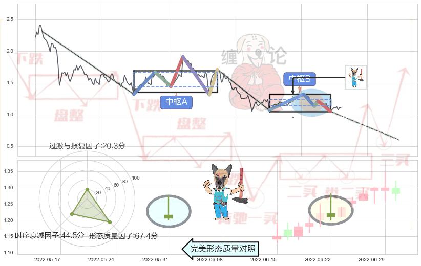 ➣ 【中枢B】:2022-05-26-2022-08-02,中枢由5笔构成,共47交易日, ZG=1.2100, ZD=1.1300
