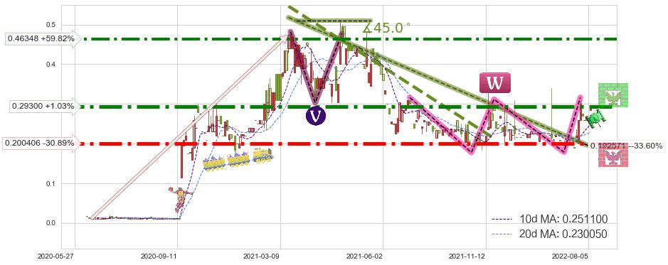 ♘ 阻力价格位0.46348,可信任强度72.52%,距离最后交易2022-08-08形成的收盘价格0.29000相差 +59.82%