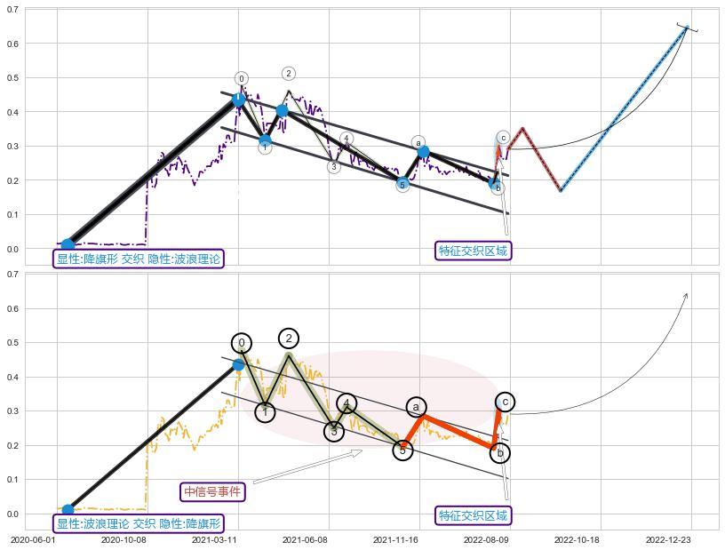 ➢ 波浪理论属【中级别信号事件】降旗形属【长级别信号事件】中长周期组合信号事件,中长事件长度比60.08%