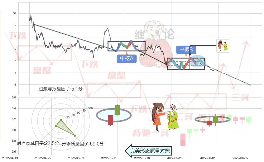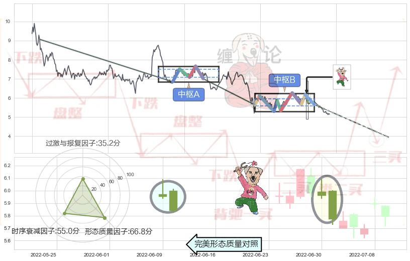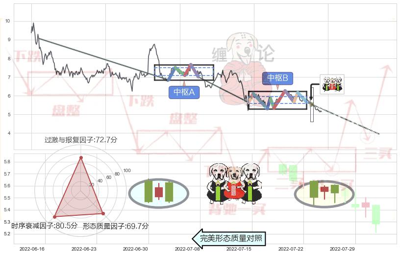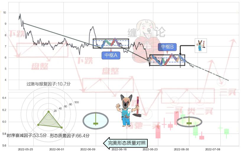 ➢ 【中枢B】:2022-03-16-2022-07-15,中枢由9笔构成,共79交易日, ZG=5.88, ZD=5.66