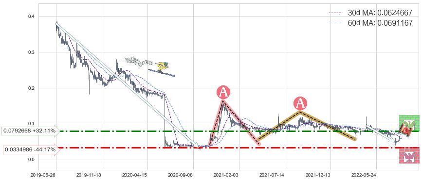 ♘ 阻力价格位0.0792668,可信任强度68.92%,距离最后交易2022-08-12形成的收盘价格0.0600000相差 +32.11%