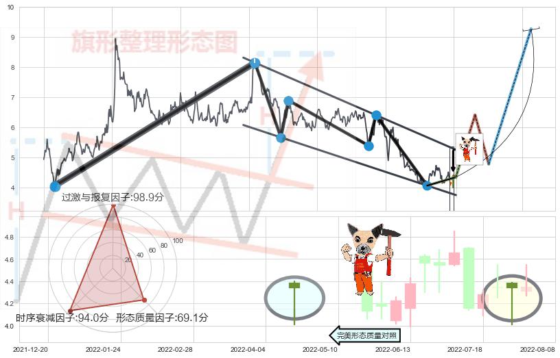 ➣ 【未确认突破,预测即将形成突破】降⚑旗形起点:2020-03-23, 预测突破点:2022-08-29,形态共599交易日