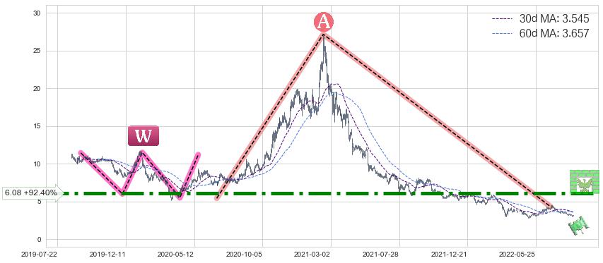 ♘ 阻力价格位6.08,可信任强度89.79%,距离最后交易2022-08-12形成的收盘价格3.160相差 +92.40%