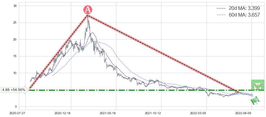 ♘ 阻力价格位4.88,可信任强度67.07%,距离最后交易2022-08-12形成的收盘价格3.160相差 +54.50%