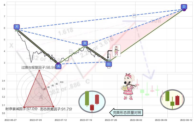 ➣ 未完成【螃蟹】形态起点X: 2022-02-17, 已到达C点: 2022-08-10, 预测最终D点: 2022-12-20, 共209交易日