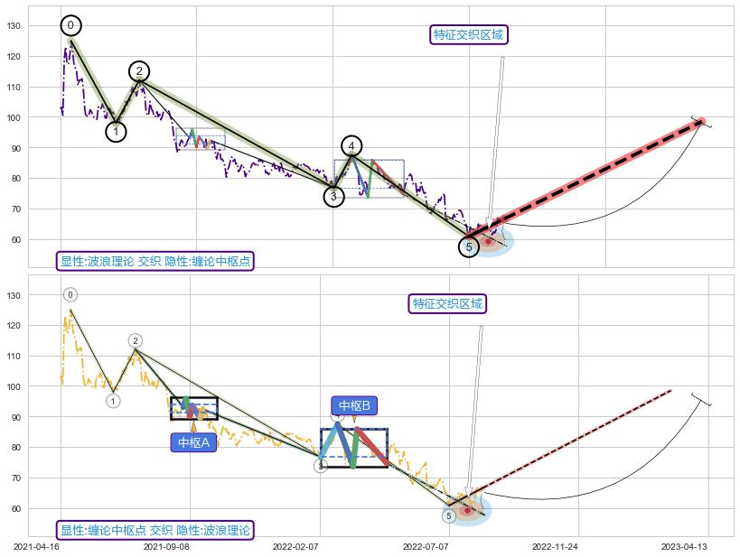 ➢ 波浪理论与缠论中枢点信号事件周期长度级别相同,同周期信号事件