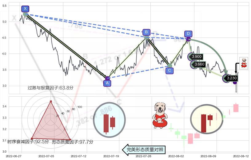 ♘ 支撑价格位3.253,可信任强度96.43%,距离最后交易2022-08-12形成的收盘价格3.420相差 -4.87%