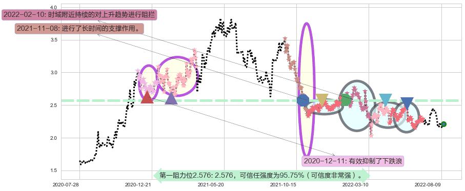 ♘ 阻力价格位2.576,可信任强度95.75%,距离最后交易2022-08-12形成的收盘价格2.210相差 +16.57%