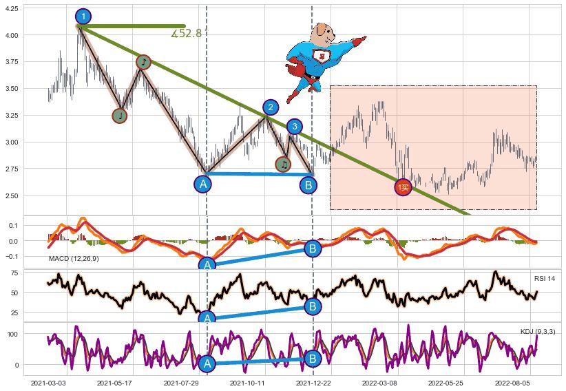 ♘ 阻力价格位4.21,可信任强度95.69%,距离最后交易2022-08-12形成的收盘价格2.860相差 +47.21%