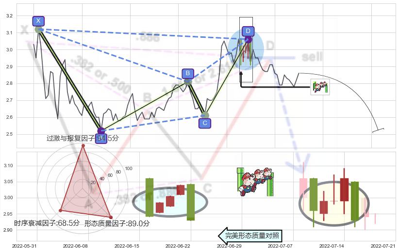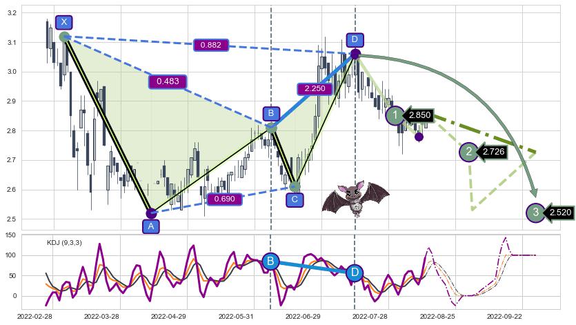 ➣ 已完成【蝙蝠】形态起点X: 2022-03-03, 终点D: 2022-07-14, 共88交易日