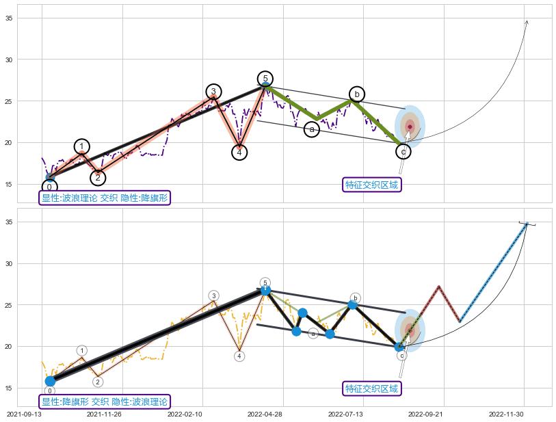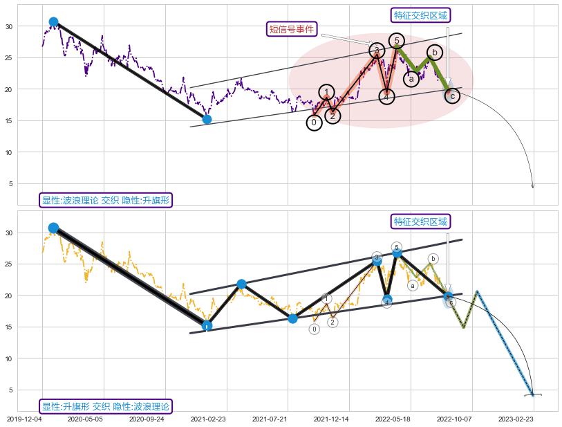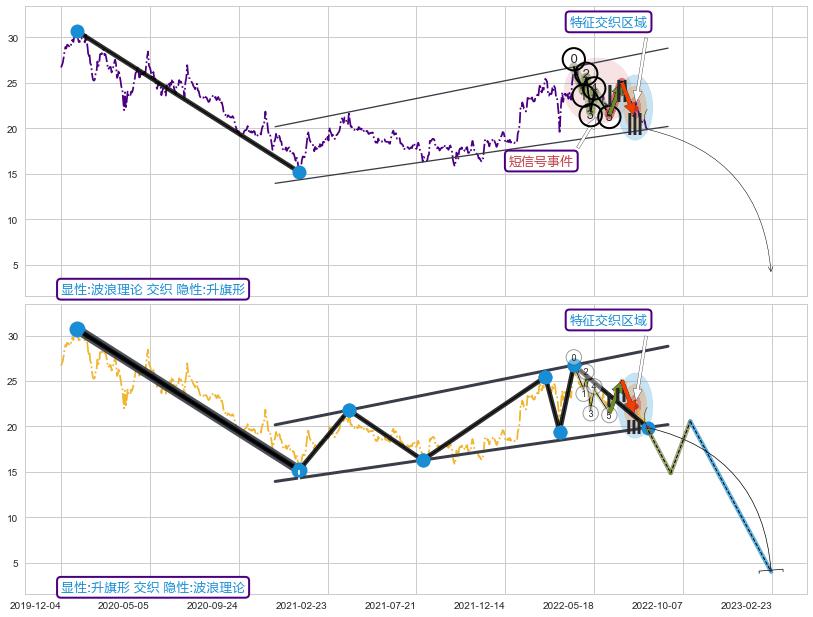 ➢ 波浪理论与降旗形信号事件周期长度级别相同,同周期信号事件
