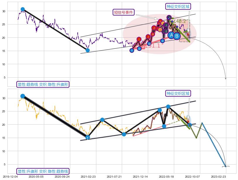 ➢ 趋势线属【短级别信号事件】升旗形属【长级别信号事件】长短周期组合信号事件, 短长事件长度比31.88%
