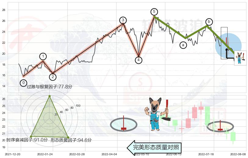 ♘ 支撑价格位18.39,可信任强度92.46%,距离最后交易2022-08-12形成的收盘价格19.88相差 -7.52%