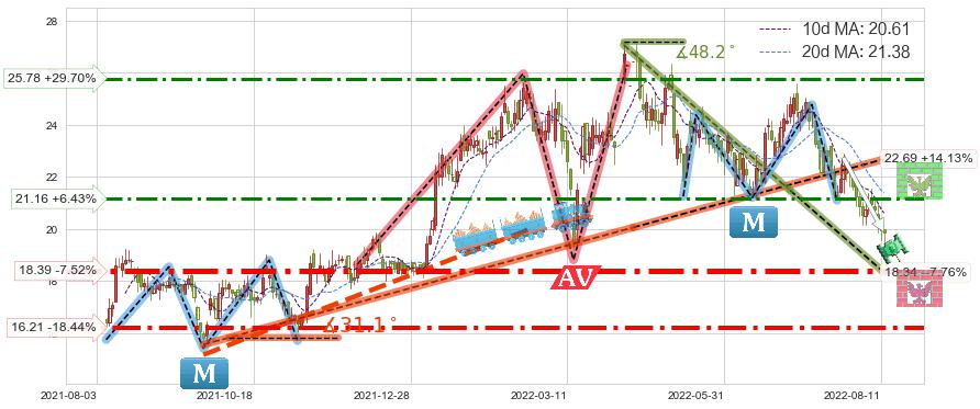 ♘ 阻力价格位21.16,可信任强度55.74%,距离最后交易2022-08-12形成的收盘价格19.88相差 +6.43%