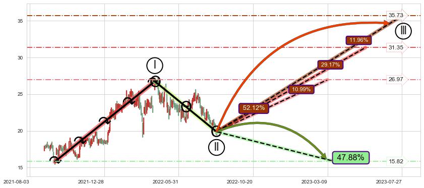 ➢ AI预测: 假定反转如期而至,第❸价格目标位置(2022-10-25, 26.75)