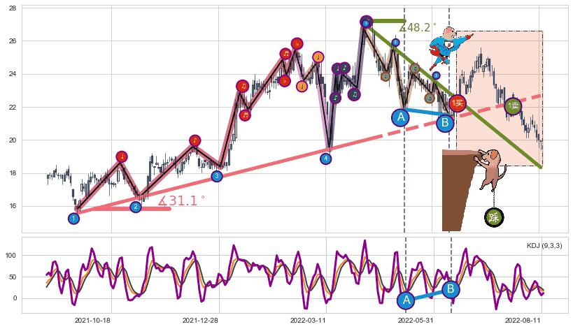 ⚔️ 2022-04-08-2022-06-30下跌趋势存在反转上涨[机会],其原下跌趋势的阻力位(18.34)已被突破[强支撑信号],原下跌趋势角度: 48.2˚