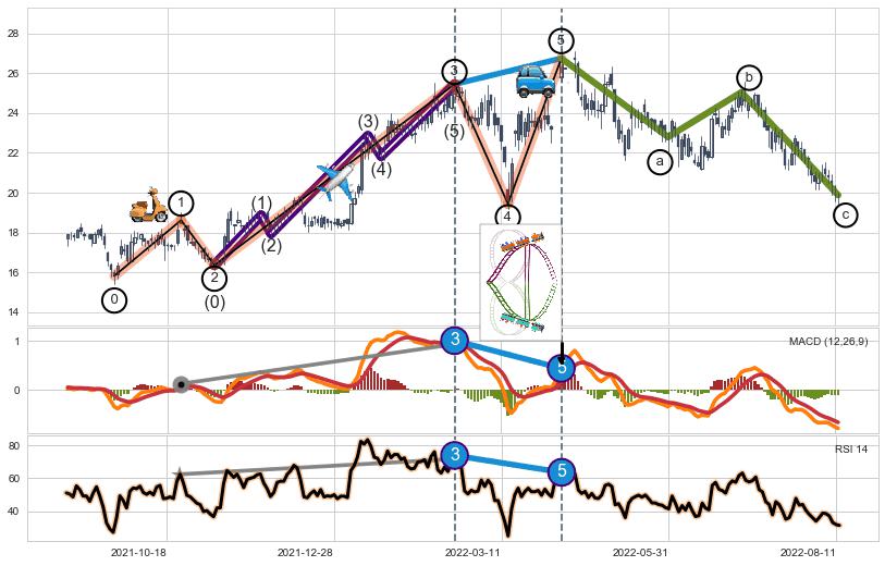 ➣ 波浪理论:猜想达到c点后小反弹终止反转下跌 → 下跌 → 【拐点】临近 → 阶段均值回复结束后继续大周期趋势跟踪