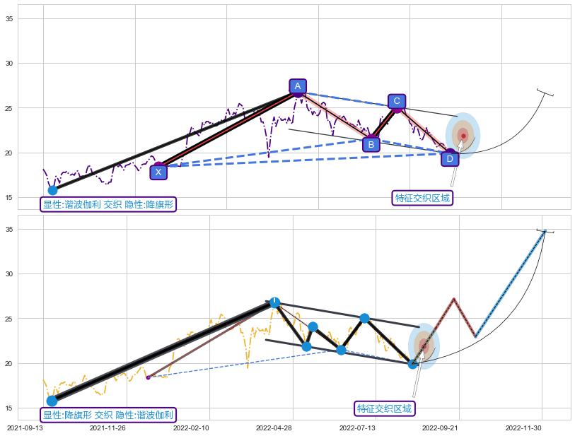 ➢ 谐波伽利与降旗形信号事件周期长度级别相同,同周期信号事件