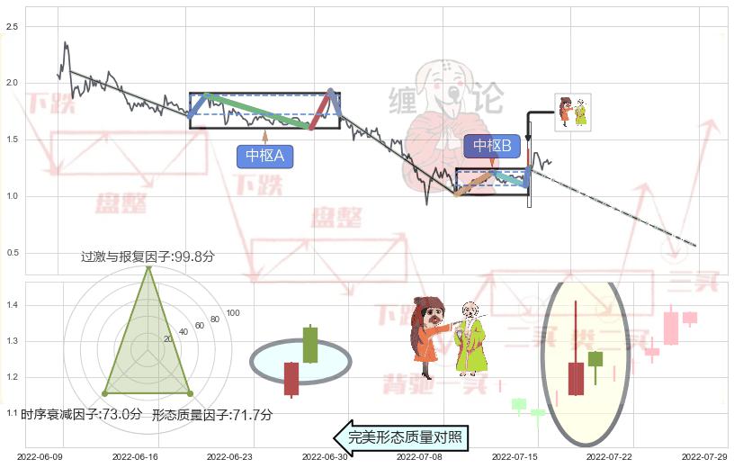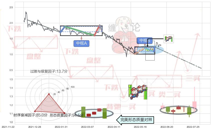 ➣ 【中枢B】:2022-04-26-2022-07-19,中枢由4笔构成,共57交易日, ZG=1.2100, ZD=1.0900