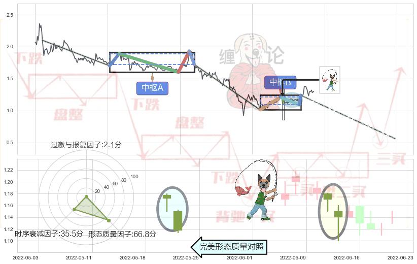 ➢ 下降三部曲(降势三鹤) 🔜 缠论中枢点破位中枢B支撑下拉 综合量化分数:49.53 【中性】