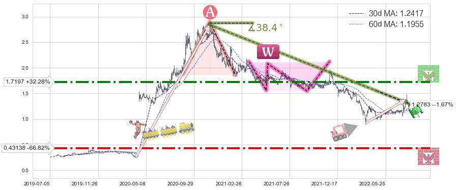 ♘ 阻力价格位1.7197,可信任强度84.57%,距离最后交易2022-08-12形成的收盘价格1.3000相差 +32.28%