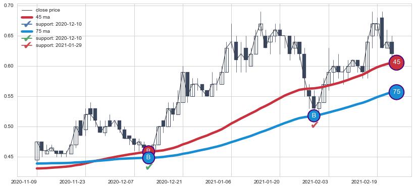 📝 多条均线形成死叉后走势最低价格达到: 0.110000