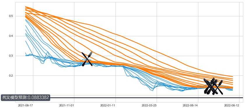 ➢ 10小时均线于(2021-11-22: 0.28150)形成【死叉】基于【死叉历史模型】预测死叉后最低波谷价格: 0.244910, 死叉后最低价格0.110000,已经下跌超出预测最低波谷价格, 预期反弹