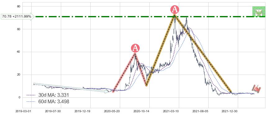 ♘ 阻力价格位70.78,可信任强度79.09%,距离最后交易2022-03-31形成的收盘价格3.200相差 +2111.99%