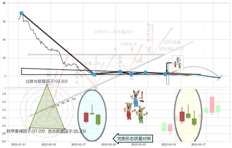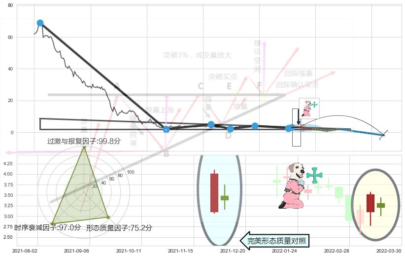 ➢ 🕰 价格走势在2022-03-07至2022-03-07期间形成下降插入线(坠落线),残存影响值:-8.50