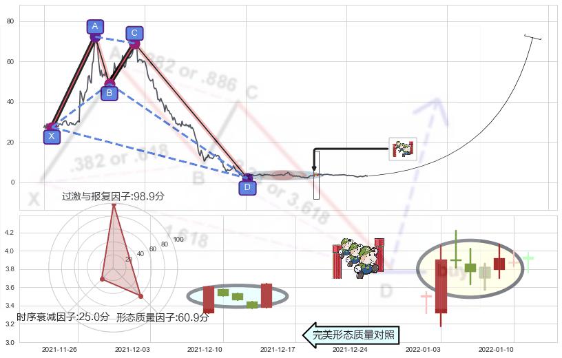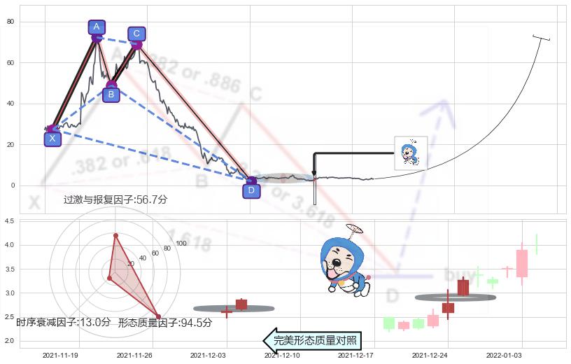 ➢ 曙光初现形态 🔜 谐波螃蟹d拐点上涨支撑 综合量化分数:53.51 【中性】