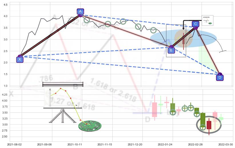➣ 未完成【蝴蝶】形态起点X: 2021-12-22, 已到达C点: 2022-03-18, 预测最终D点: 2022-04-08, 共66交易日