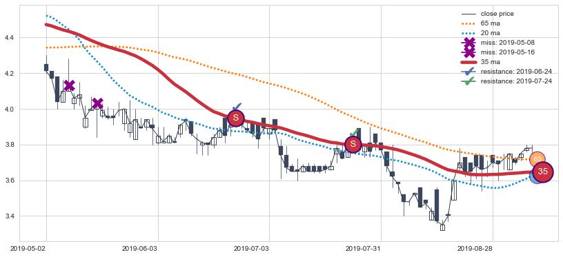➣ 65小时均线于(2022-07-25: 6.15)形成【死叉】基于【死叉历史模型】预测死叉后最低波谷价格: 5.81, 死叉后最低价格4.52,已经下跌超出预测最低波谷价格, 预期反弹