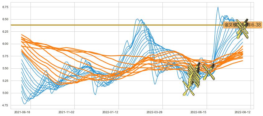 ➣ 21小时均线于(2022-08-11: 6.34)形成【金叉】基于【金叉历史模型】预测金叉后最高波峰价格: 6.86, 金叉后最高价格6.50,尚未达到预测最高波峰价格, 预期继续上涨