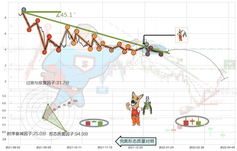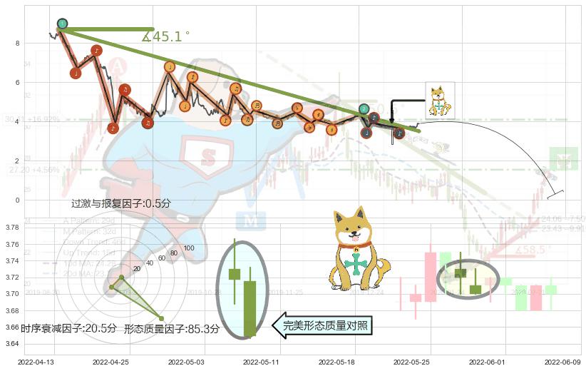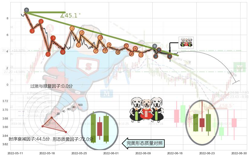 ➢ 上涨螺旋桨形态 🔜 趋势线下跌趋势面临突破上涨 综合量化分数:50.54 【中性】
