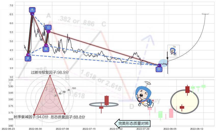 ➢ 上涨螺旋桨形态 🔜 谐波蝴蝶d拐点上涨支撑 综合量化分数:50.96 【中性】