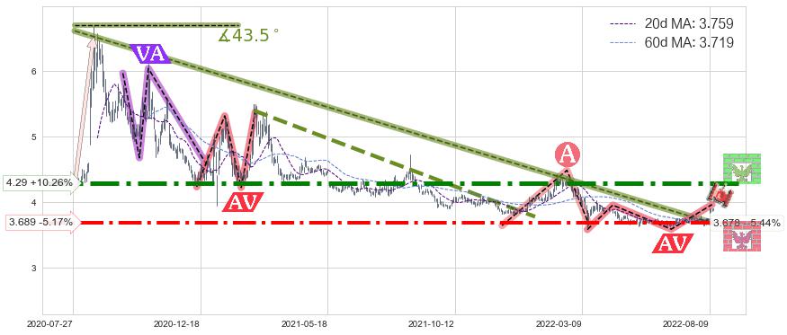 ♘ 支撑价格位3.689,可信任强度82.66%,距离最后交易2022-08-12形成的收盘价格3.890相差 -5.17%