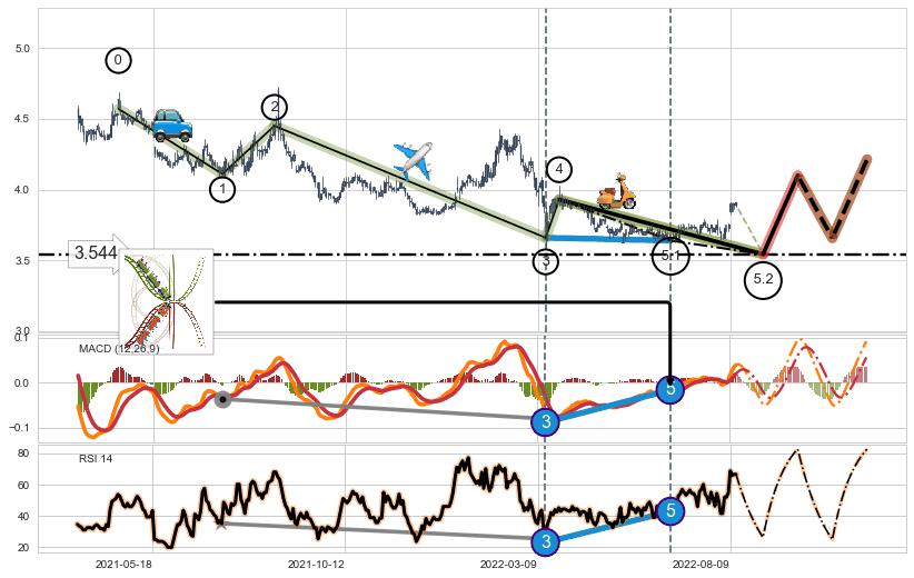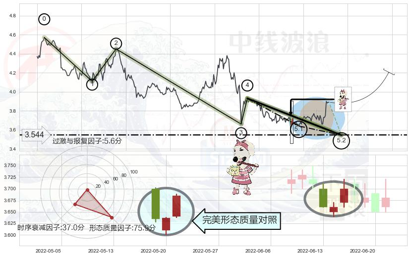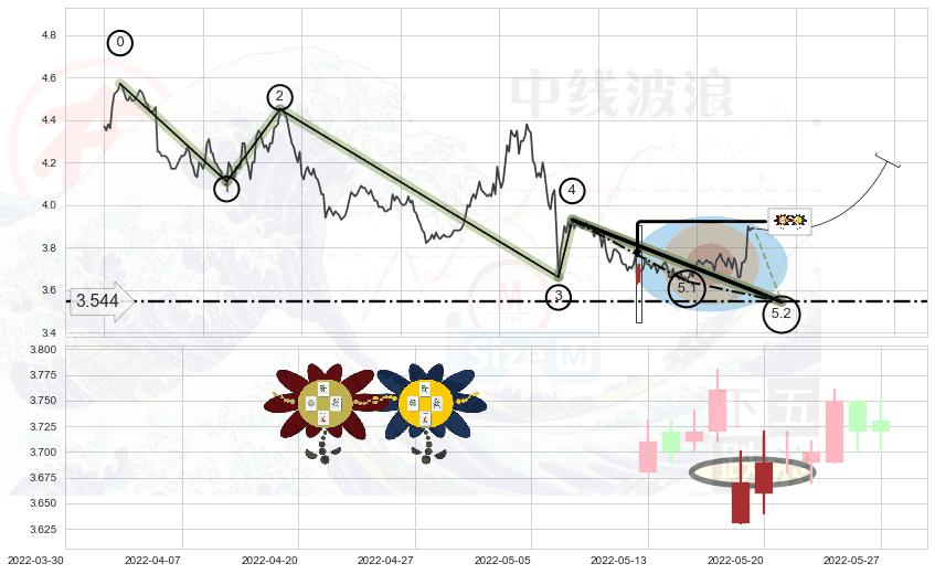 ➣ 5.1: 预测当前第5浪位置(2022-06-24, 3.640),仍然有下跌空间