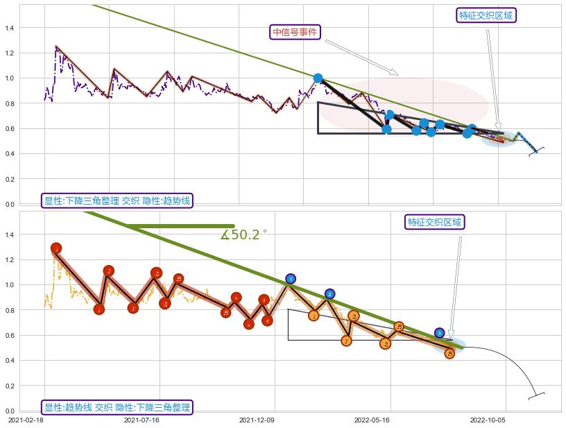 ➢ 下降三角整理属【中级别信号事件】趋势线属【长级别信号事件】中长周期组合信号事件,中长事件长度比37.39%
