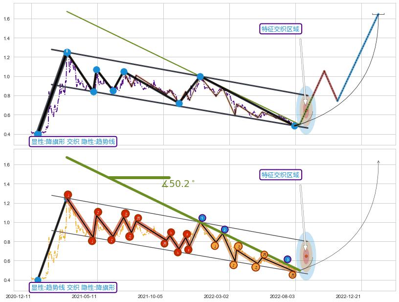 ➣ 【未确认突破,预测即将形成突破】降⚑旗形起点:2020-12-28, 预测突破点:2022-09-09,形态共418交易日