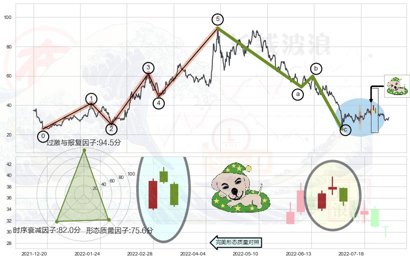 ➢ 黄昏之星(夜星) 🔜 波浪理论击穿破位C点继续下跌 综合量化分数:43.09 【偏空】