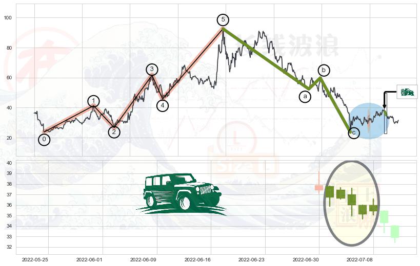 ➢ 波浪理论:猜想击穿破位c点后继续下跌 → 下跌 → 风险信号 → 小趋势跟踪