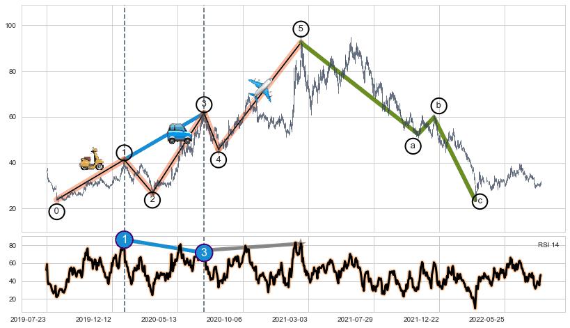 ➢ 波浪理论:猜想达到c点后小回调终止反转上涨 → 上涨 → 【拐点】临近 → 阶段均值回复结束后继续大周期趋势跟踪