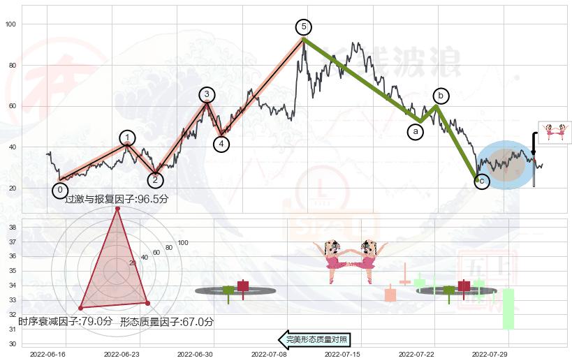 ➢ 阴包阳形态 🔜 波浪理论击穿破位C点继续下跌 综合量化分数:43.85 【偏空】