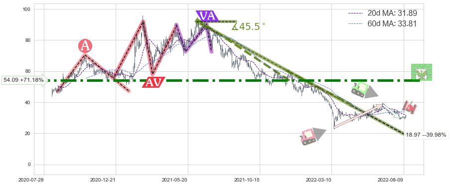 ♘ 阻力价格位54.09,可信任强度89.64%,距离最后交易2022-08-12形成的收盘价格31.60相差 +71.18%