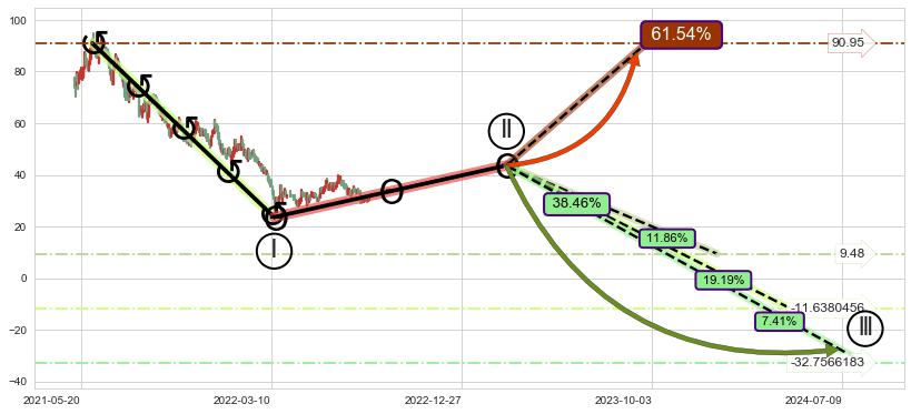 ➢ 高概率大级别循环下跌浪被破坏,反转向上(突破5浪起点)概率61.54%
