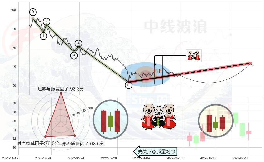 ➢ 曙光初现形态 🔜 波浪理论下跌浪:浪5反弹拐点 综合量化分数:52.59 【中性】