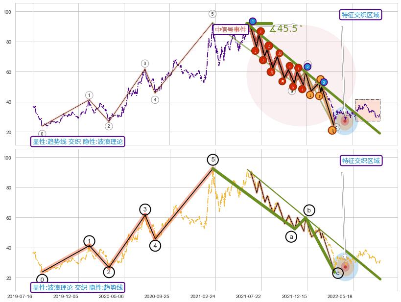 ➢ 趋势线属【中级别信号事件】波浪理论属【长级别信号事件】中长周期组合信号事件,中长事件长度比37.34%