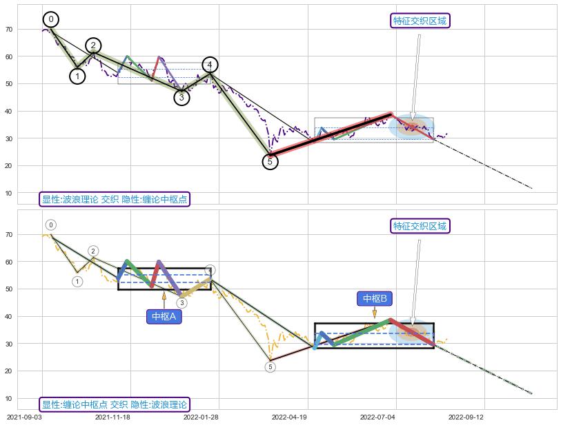 ➢ 波浪理论与缠论中枢点信号事件周期长度级别相同,同周期信号事件
