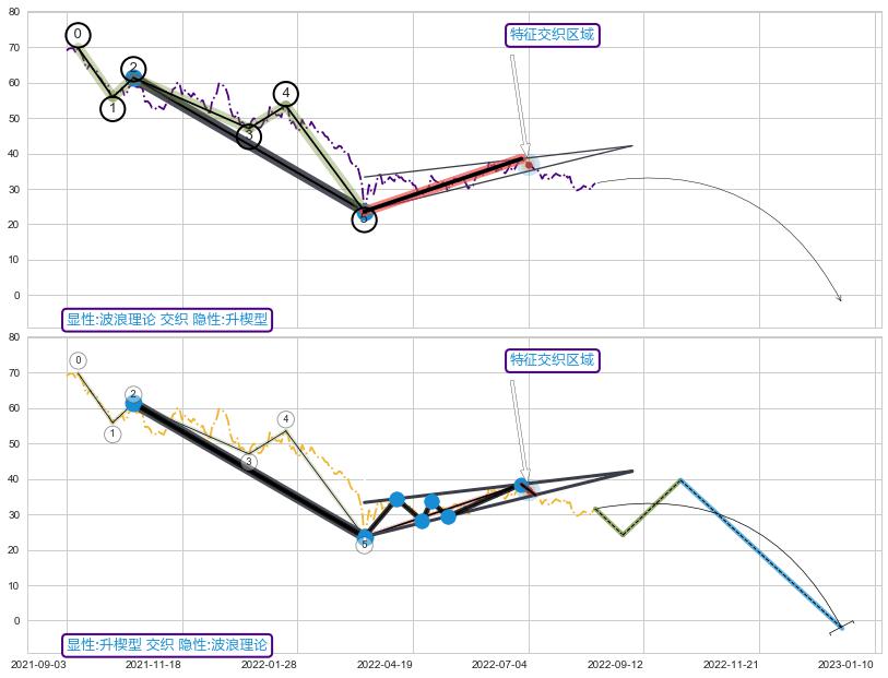 ➣ 循环浪继续向下【平均值】位置(2023-02-23, -5.3262851),匹配聚类样本比例53.54%, 可能性概率25.22%